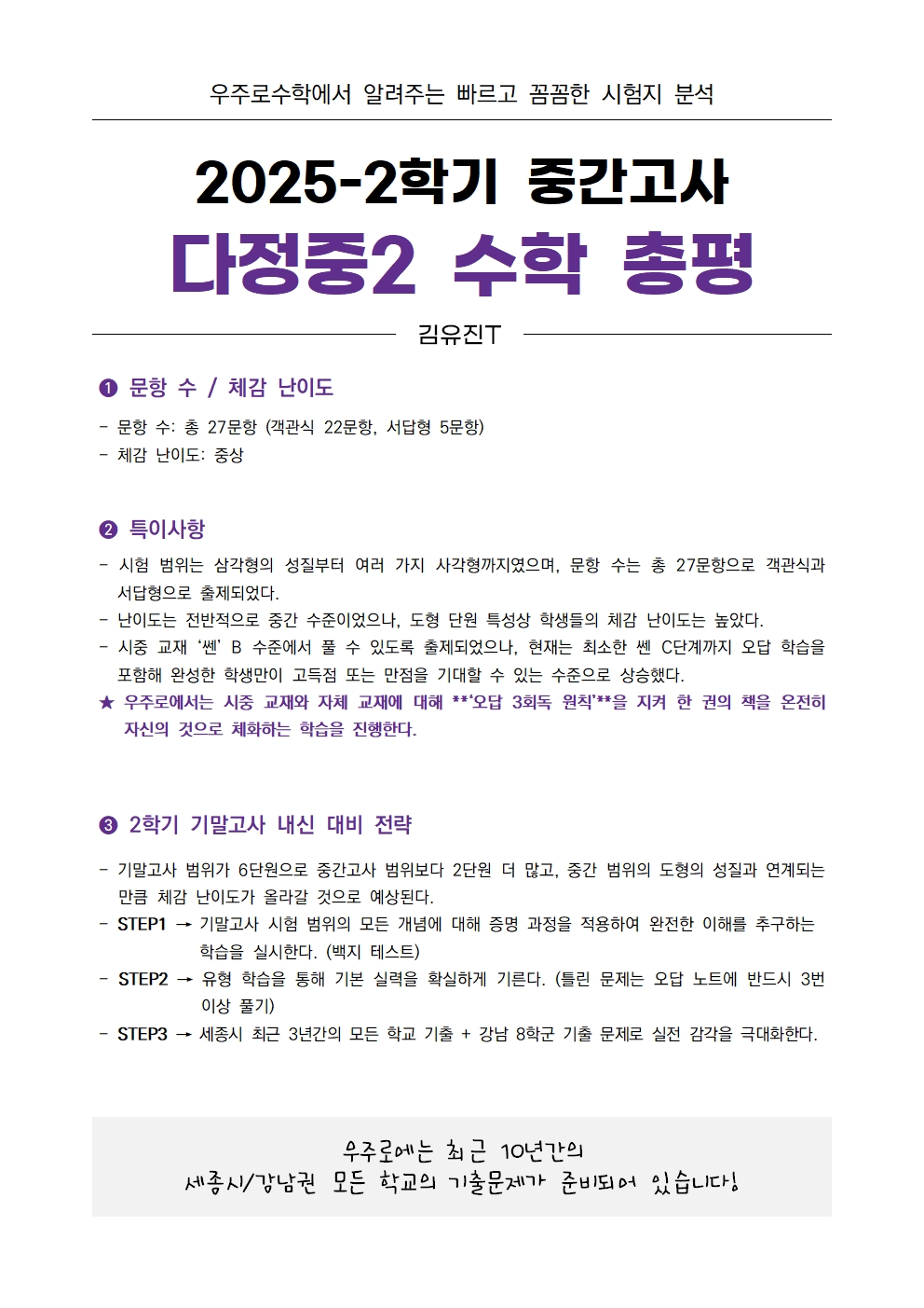 단순한 성적 확인을 넘어, 어떤 문제가 출제되었고 학생들이 어떤 부분에서 어려움을 겪었는지 파악하는 것이 중요합니다🌟